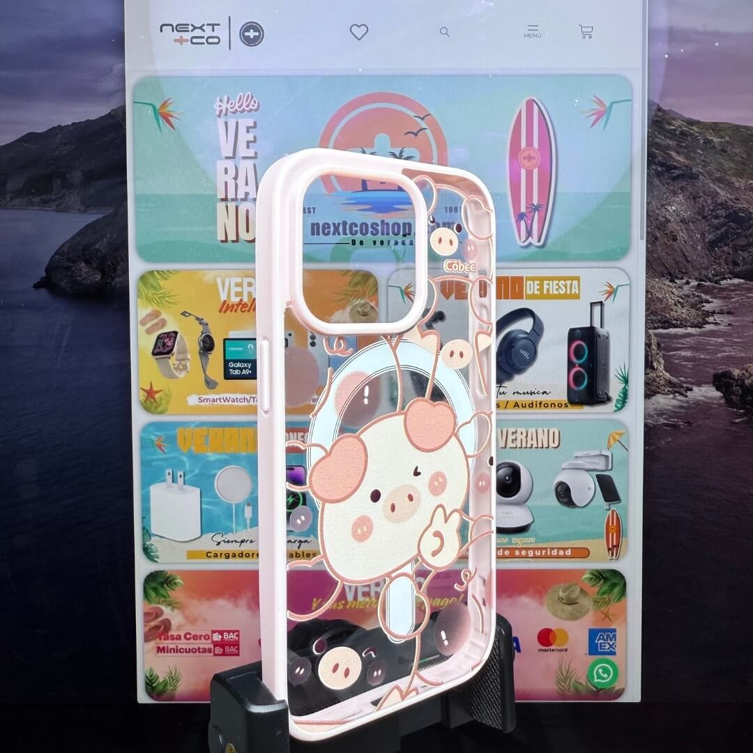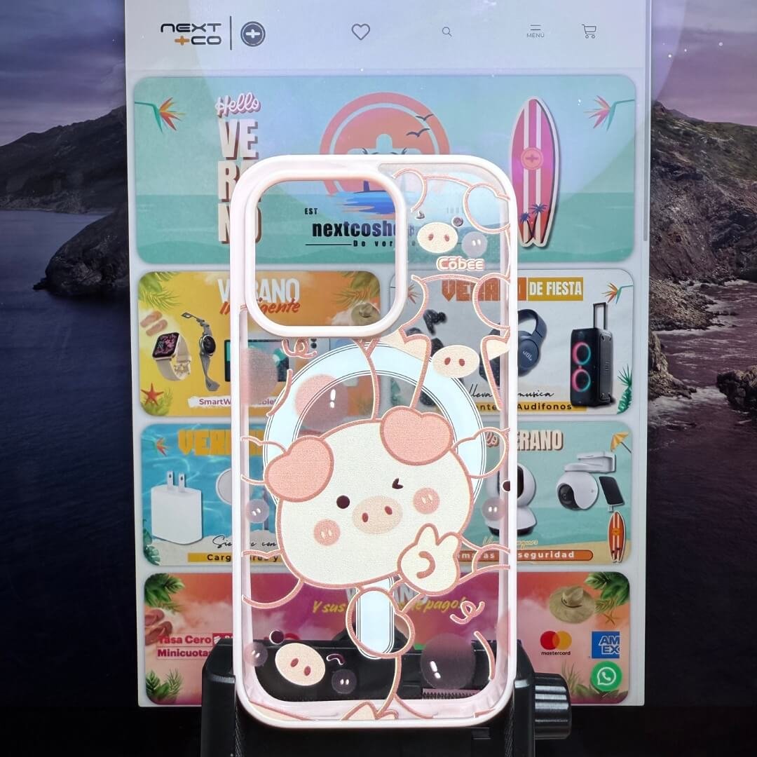 CĂ´bee Canvas MagSafe Rosado Iphone 14 pro Cerdito