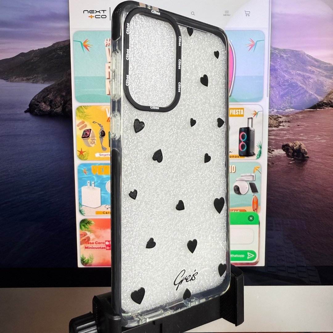 Estuche Cobee Log Samsung A73 Greis-Corazones Borde Negro