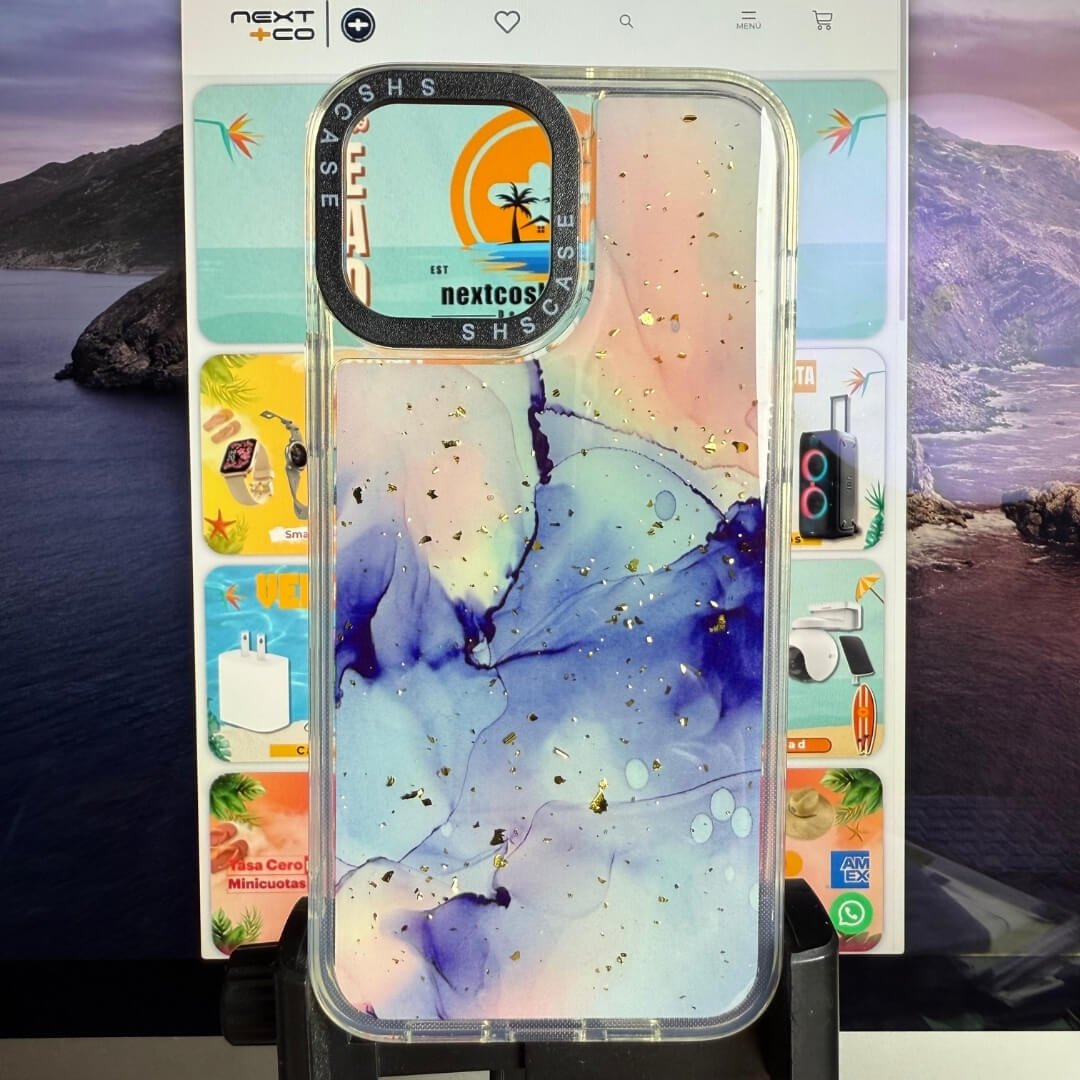 Estuche Serie Q Iphone 13 Pro Max Abstracto Rosado/Morado